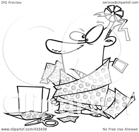Royalty-Free (RF) Clipart Illustration Of Coloring Page Line Art Of A Man Tangled In Wrapping ... Yellowimages